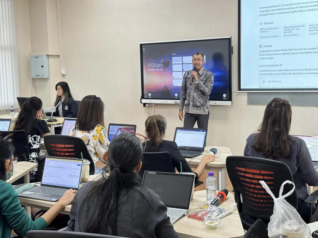พัฒนาสมรรถนะอาจารย์และบุคลากรของ มรภ.สุราษฎร์ธานี สิงหาคม 26, 2025สิงหาคม 26, 2025 admin_haa บรรยากาศการอบรม Harvard Asia Academy โดย ดร.วัชรวิชญ์ กีรติดุสิตโรจน์ ร่วมอบรมเชิงปฏิบัติการการพัฒนาสมรรถนะอาจารย์และบุคลากรของมหาวิทยาลัยราชภัฎสุราษฎร์เพื่อเป็นครูผู้สอนรายวิชาการจัดการปัญญาประดิษฐ์ AI Management