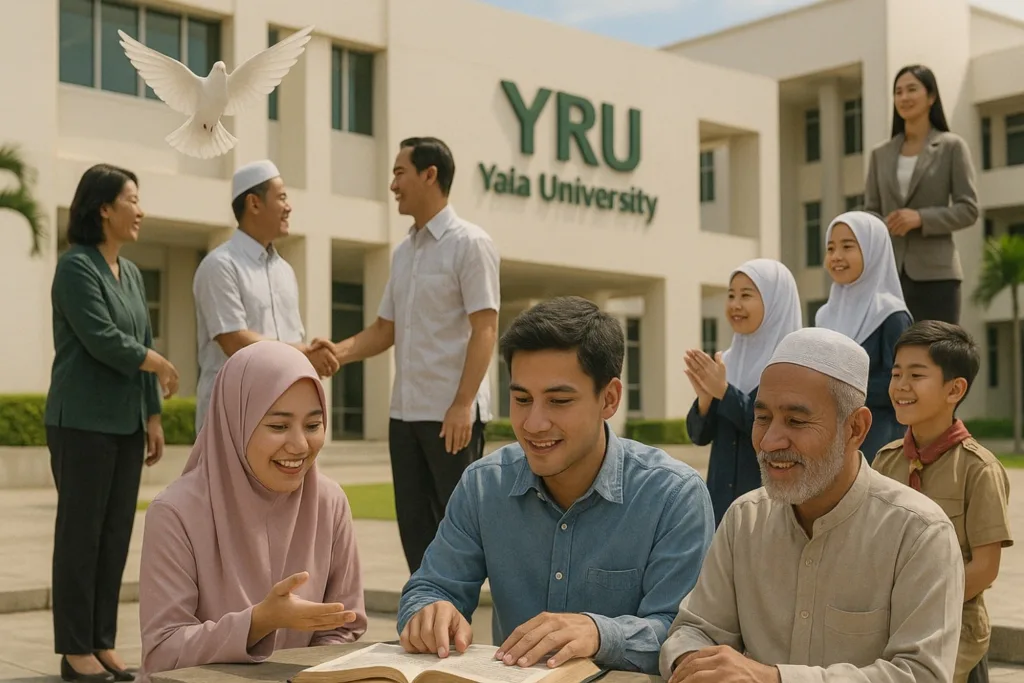 ความหลากหลายนี้เป็นทั้งทุนทางสังคมและความท้าทายสำคัญการอยู่ร่วมกันอย่างสันติและการพัฒนาต้องสอดคล้องกับอัตลักษณ์ท้องถิ่น มหาวิทยาลัยราชภัฏยะลามีบทบาทสำคัญในการพัฒนาพื้นที่โดยเชื่อมโยงองค์ความรู้ทางวิชาการกับภูมิปัญญาท้องถิ่น สร้างนวัตกรรมทางสังคมเพื่อสันติสุขและการพัฒนาที่ยั่งยืนท่ามกลางปัญหาความไม่สงบและความเปลี่ยนแปลงยุคดิจิทัล การแก้ปัญหาไม่อาจอาศัยเพียงมาตรการความมั่นคงหรือเศรษฐกิจ แต่ต้องพัฒนามนุษย์ให้ครบมิติ ทั้งความรู้ ทักษะ และคุณธรรม เพื่อให้ประชาชนอยู่ร่วมกันด้วยความเข้าใจและเคารพในความต่าง พร้อมร่วมมือพัฒนาท้องถิ่นของตนเองได้อย่างยั่งยืน ยุทธศาสตร์ของมหาวิทยาลัยเน้นบูรณาการศาสตร์สากลและท้องถิ่น เข้าใจบริบทเฉพาะพื้นที่อย่างลึกซึ้ง สร้างองค์ความรู้และนวัตกรรมเพื่อยกระดับคุณภาพชีวิต และเสริมความเข้มแข็งให้แก่ชุมชนผ่านวิจัย การสอน และบริการวิชาการ มหาวิทยาลัยมุ่งผลิตบัณฑิตที่เชี่ยวชาญวิชาชีพและมีจิตสำนึกสาธารณะ เข้าใจรากเหง้าวัฒนธรรม ยอมรับความหลากหลาย และปรับตัวทันโลกที่เปลี่ยนแปลงอย่างรวดเร็ว บัณฑิตเหล่านี้จะเป็นสะพานเชื่อมวัฒนธรรมและผู้นำการเปลี่ยนแปลงในชุมชน นอกจากนี้ มหาวิทยาลัยยังเป็นศูนย์การเรียนรู้ตลอดชีวิต ผ่านหลักสูตรระยะสั้น การฝึกอบรม และกิจกรรมแลกเปลี่ยน รวมทั้งเป็นพื้นที่ปลอดภัยสำหรับการแสดงความคิดเห็นและสร้างความเข้าใจ ด้วยวิสัยทัศน์ที่ชัดเจน มหาวิทยาลัยพร้อมเป็นผู้นำทางวิชาการ เพื่อสร้างสันติสุขและพัฒนาคนชายแดนใต้ให้เป็นพลเมืองคุณภาพในศตวรรษที่ 21